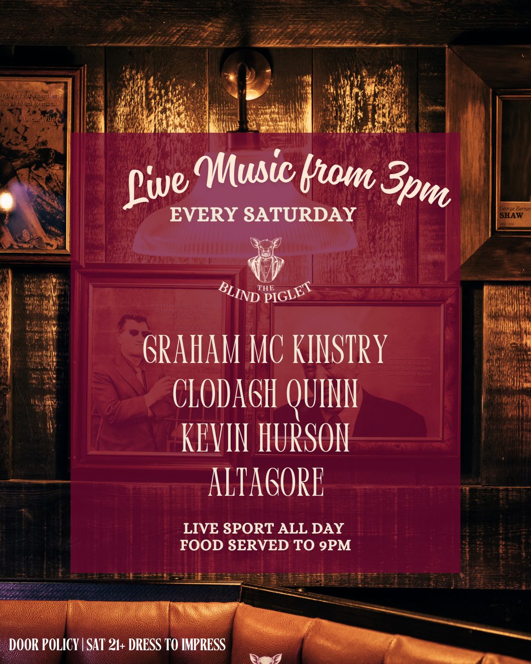 For the latest entertainment schedule follow The Blind Piglet on socials